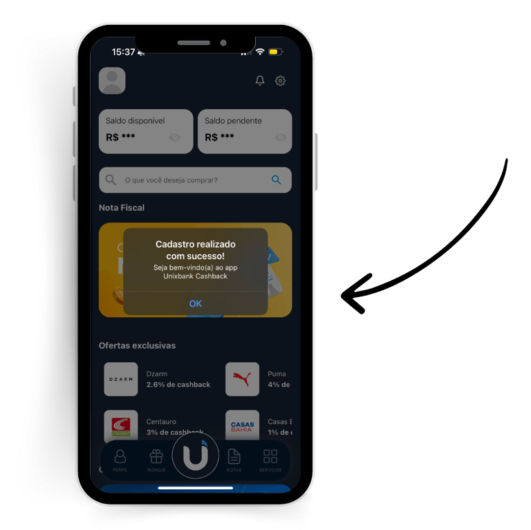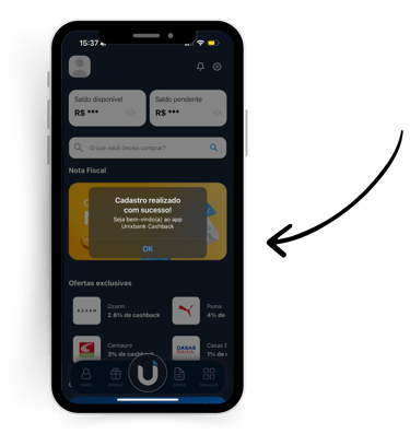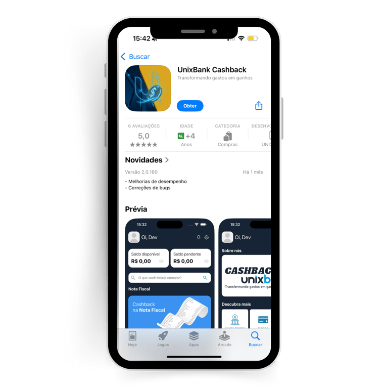• Baixe o app Unixbank Cashback na loja de aplicativos.