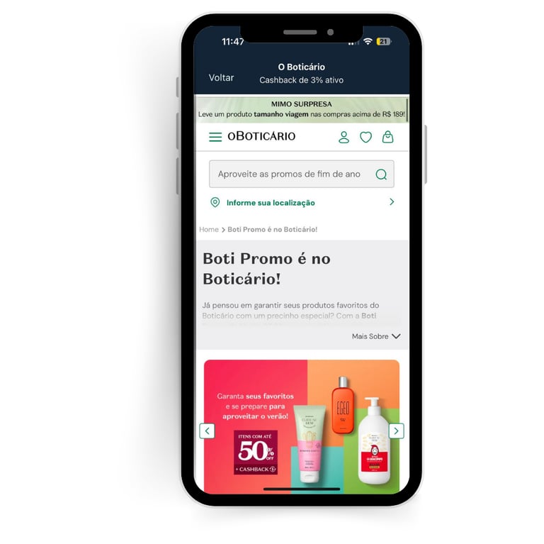 • O Boticário oferece 3% de cashback.